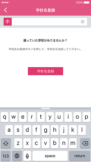 学校検索画面で出身校が検索されない場合には、下の絵のように管理者に‘学校追加’を申請してください。